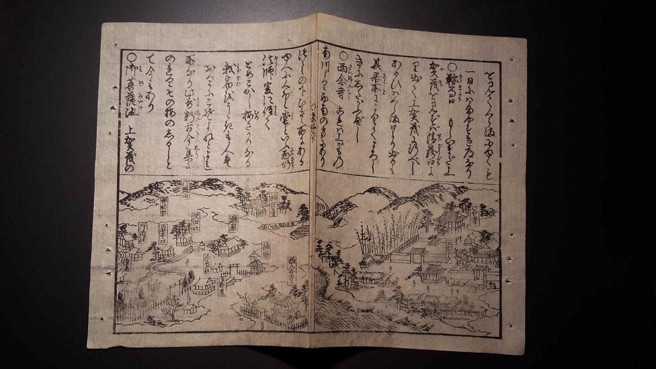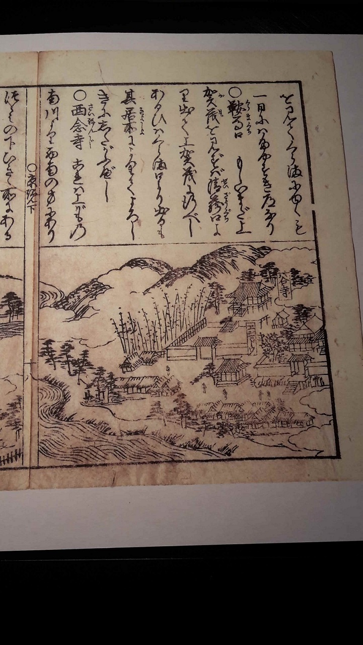 Um alles oben kurz zu sagen, ist das, glaube ich, ein Teil eines topografischen (besonders geht es um Kyoto) Buches, das vermutlich in der Edo-Zeit veröffentlicht wurde.