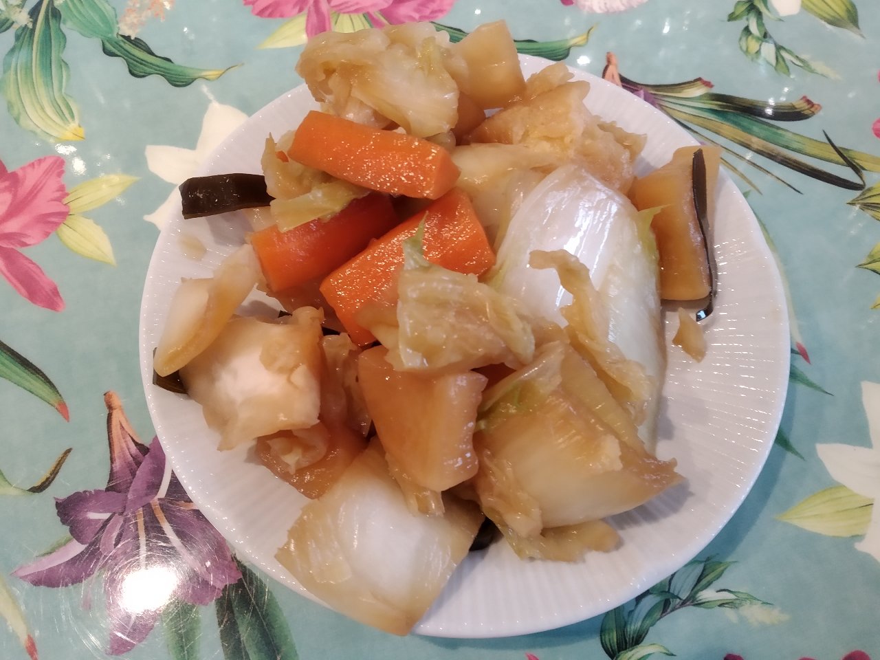 Ich hatte noch Karotten, Daikon, Weißkraut und Chinakohl übrig die weg mussten und tatsächlich in meinem Kochbuch ein Rezept genau dafür gefunden.