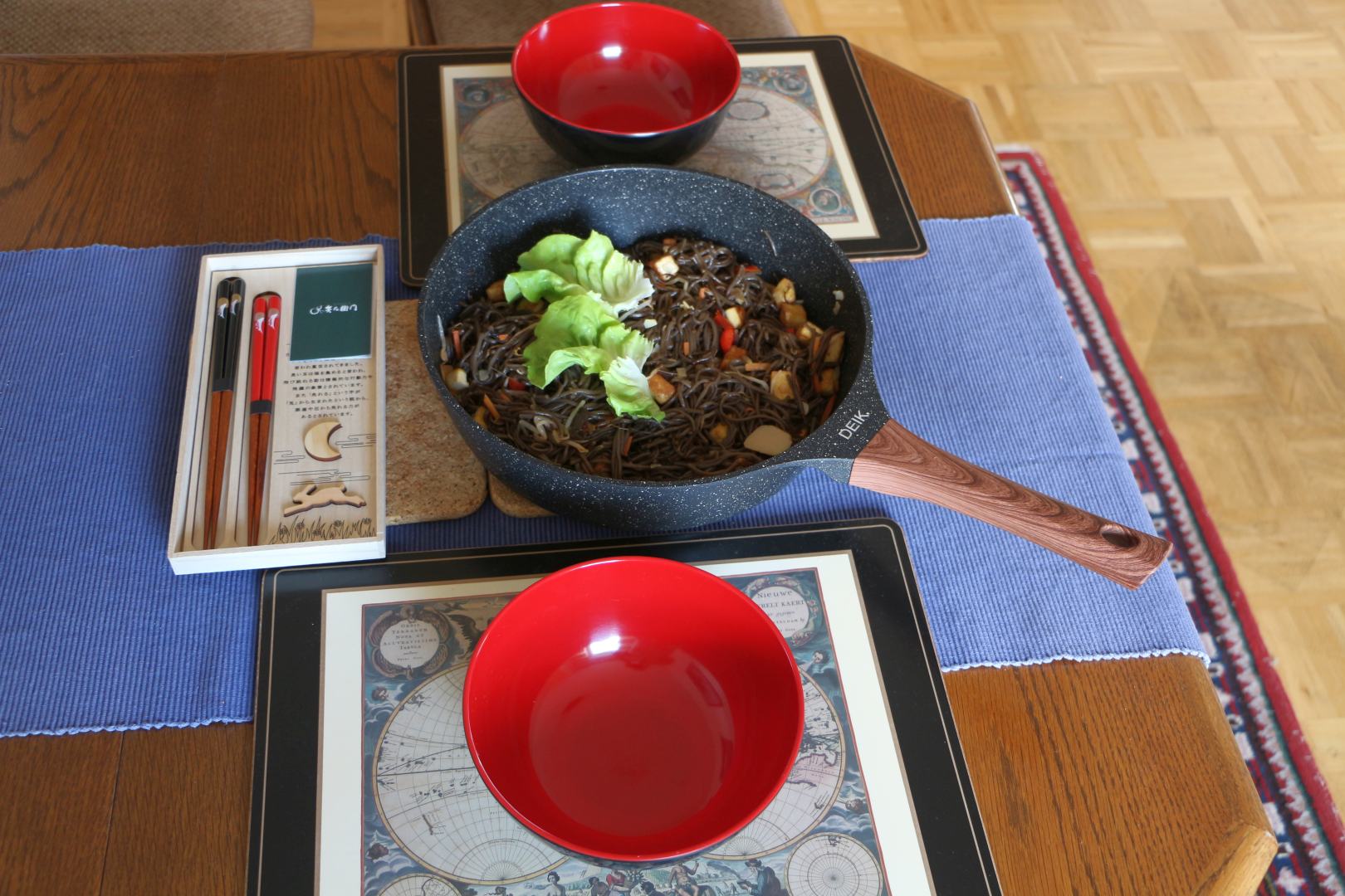 In der Zwischenzeit möchte ich Euch unser heutiges Mittagessen zeigen. Das Essen selbst ist ganz einfach - Sobanudeln.