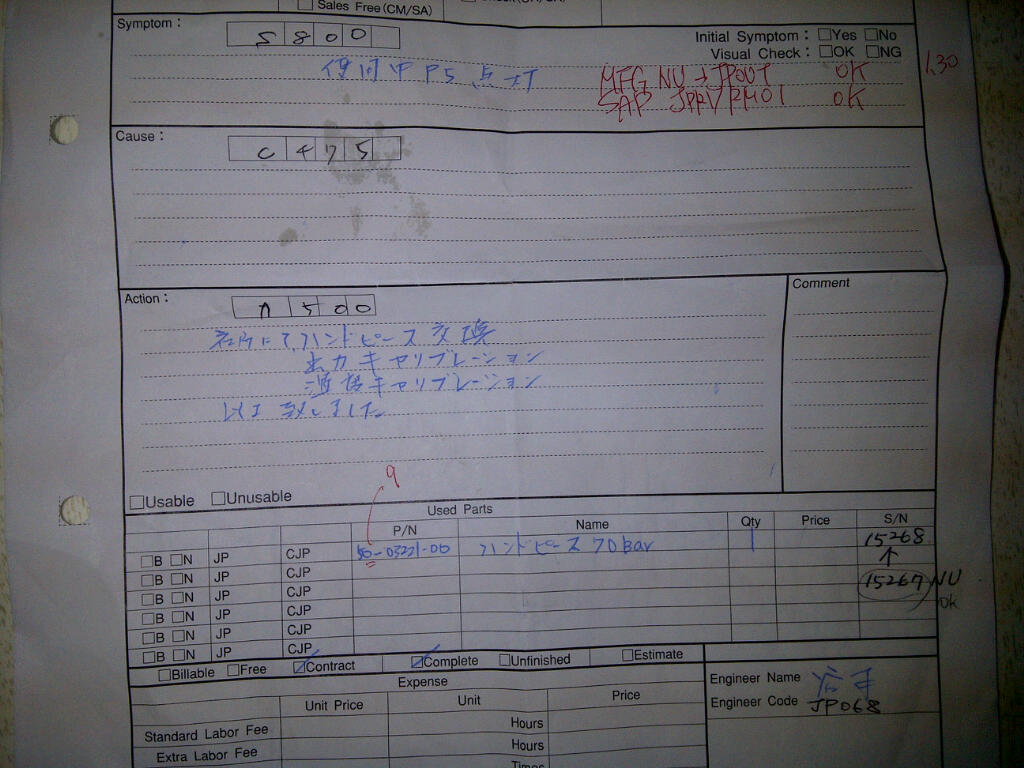 Der Text in Japanisch ist auf einem Blatt, ich habe es fotografiert und hier einfügen (als Bild zu sehen), es ist ein Fehler Bericht den ich