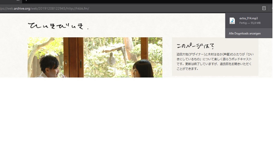 Hm, du hast recht, der Podcast scheint mittlerweile offline zu sein. Hier wäre noch ein Archivlink, der noch funktioniert.