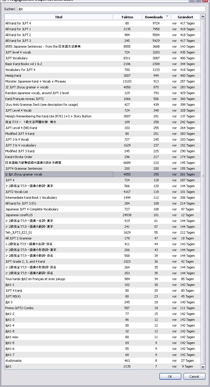 Für StackZ gibt es fertige Vokabellisten für höhere JLPTs. Wie ist dies bei Anki ?