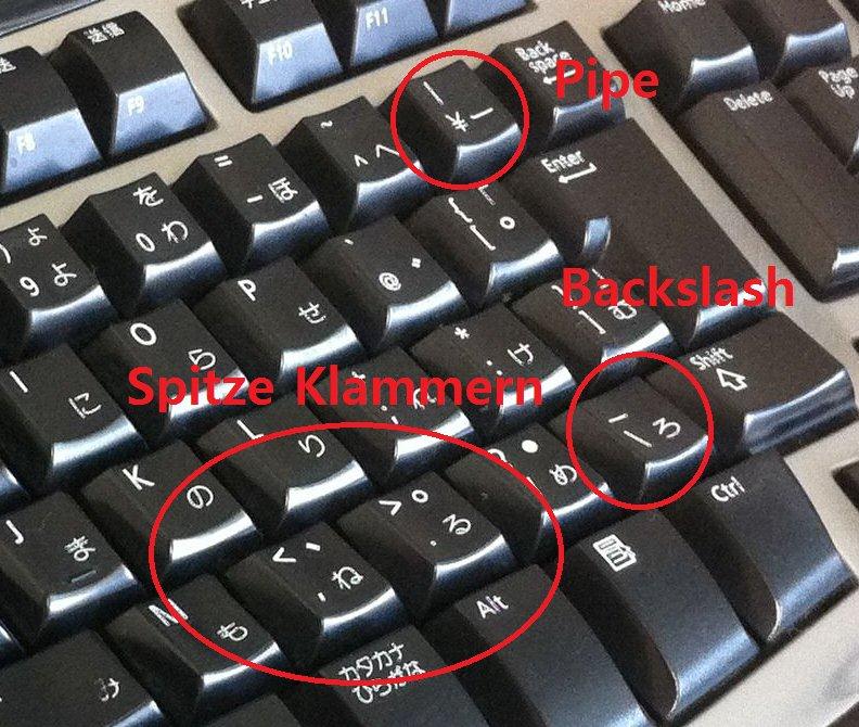 Tastatur evtl. kein Blackslash gibt: Den gibt es im japanischne Zeichensatz nicht. Dort ist anstelle des Blackslashes immer ein Yen-Zeichen. Könnt ihr einfach ausprobieren, indem ihr für \ mal eine