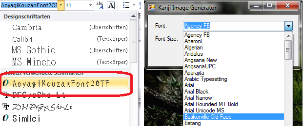 Der AoyagiKouzanFont20TF ist wohl kein TrueTypeFont. Vielleicht liegt das daran?